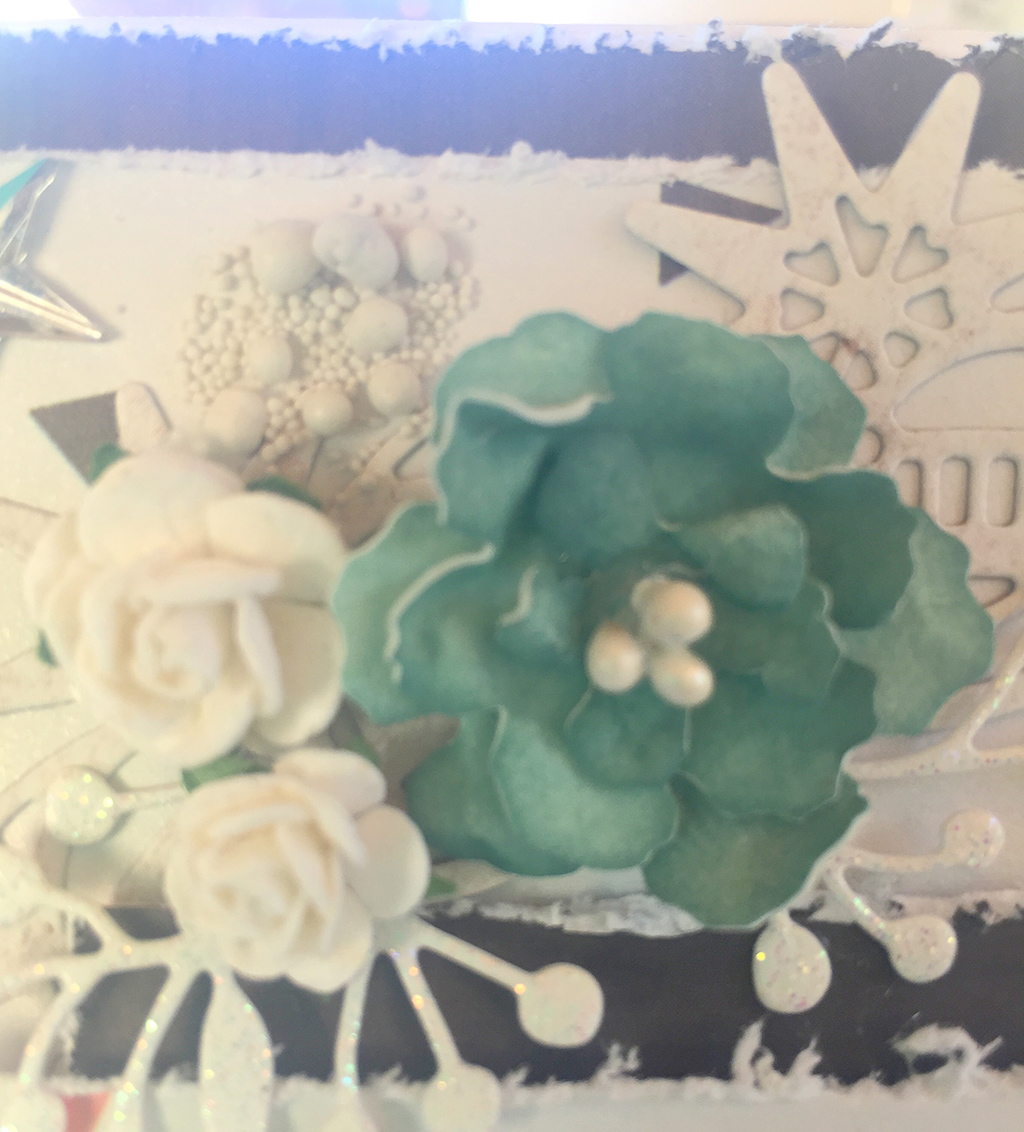 Bladene har jeg lavet i hvid glimmerkarton så det blev mere tøset.