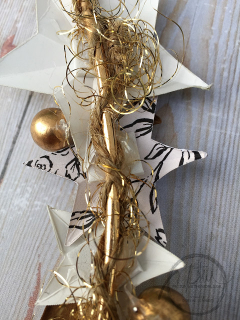 Desuden har jeg pyntet med metaluld i guld og mellemstore guldkugler, hvor jeg klipper stangen af.