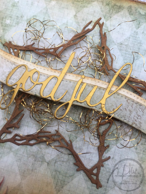 Næste kort har jeg brugt guldfarvet metaluld, som er så fin til at lave højde på kortet.