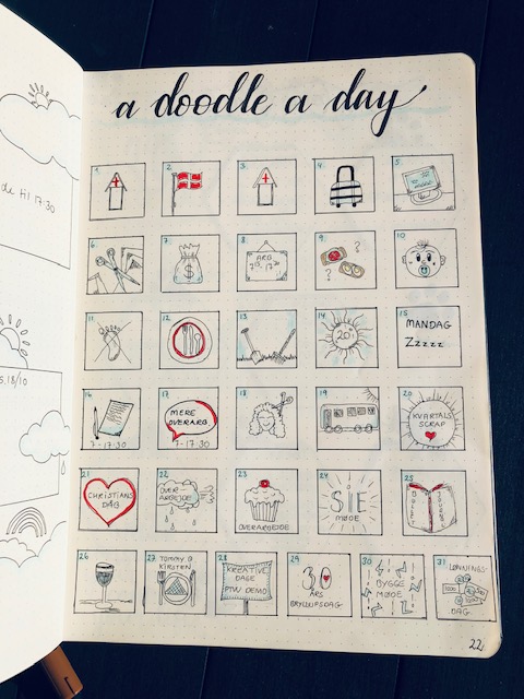 A-doodle-a-day med tegning eller tekst der beskriver min dag i oktober: