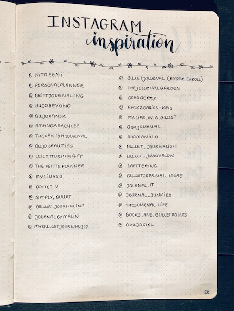 Instagram-inspiration med links til IG bullet journal konti: