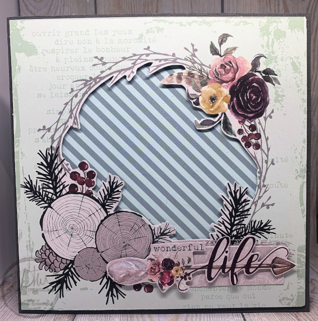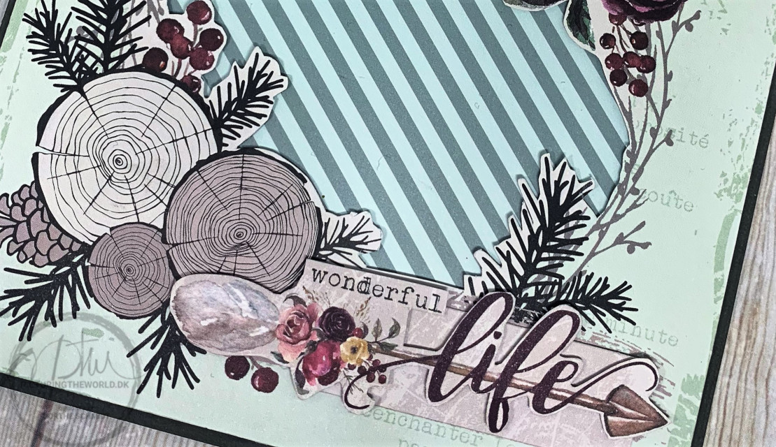 Forrest er mønsteret klipper og påsat baggrunden med 3D puder. Hvilket giver en lækker dybde på kortet.