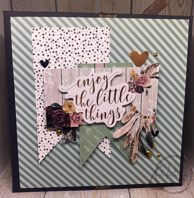 Forsiden er pyntet med papir fra både Soffie Bonde og papir fra Florileges.