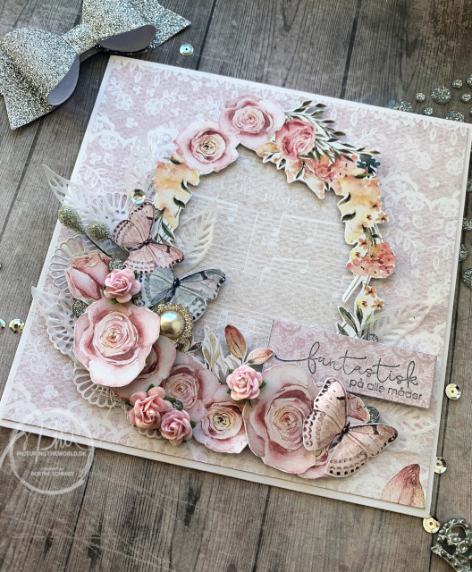 Jeg har stanset den lækre dolie fra .... ud i hvidt katon og brugt 1/2 under den udklippede krans.