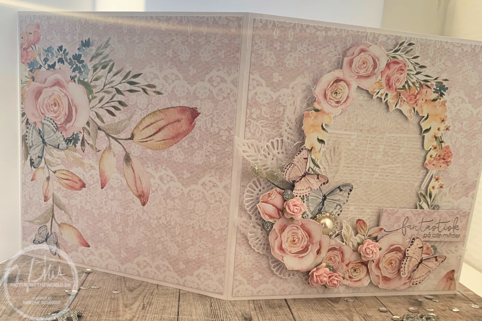 Bagsiden af kortet er også dekoreret ed det lækre papir og fuldender kortet.