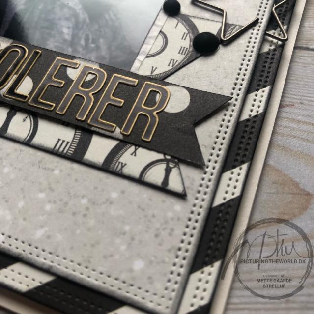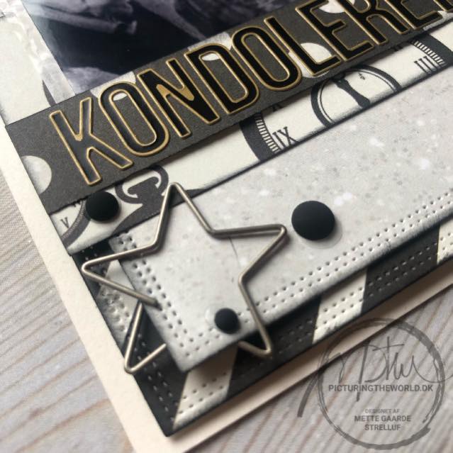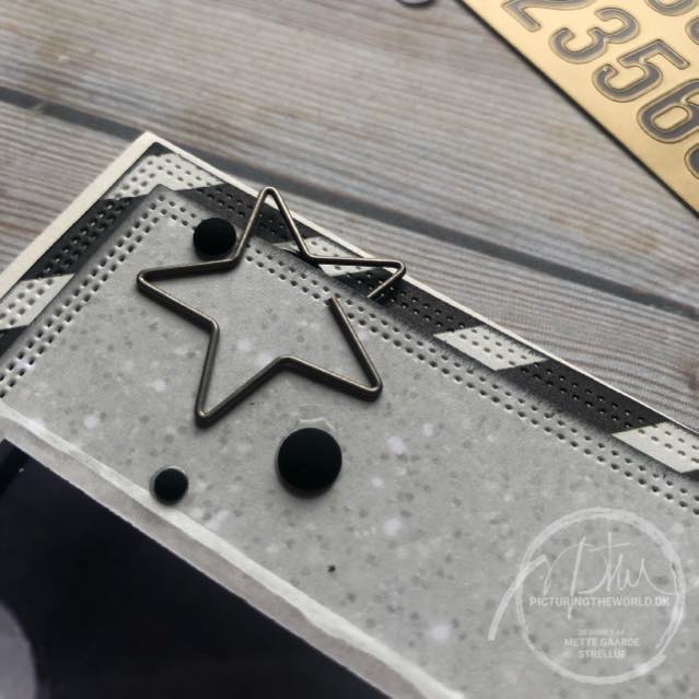 I januarkittet fra kitklubben er der mange papirer i mørkere toner. Det er dem, jeg har brugt på mit kort. Desuden passede metalstjernerne fra kittet også rigtigt fint ift. fortællingen om, at man bliver en stjerne, når man tager herfra.