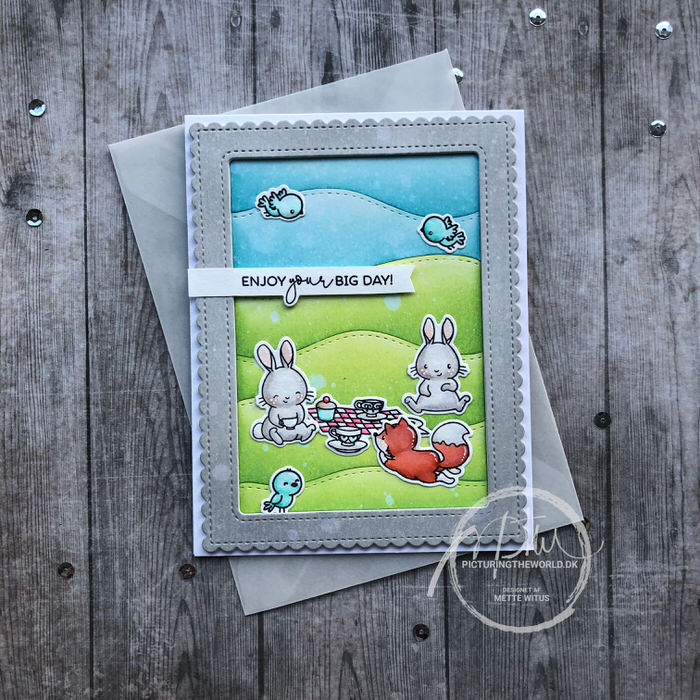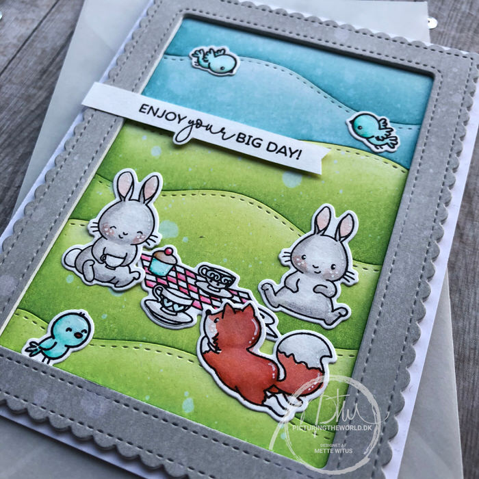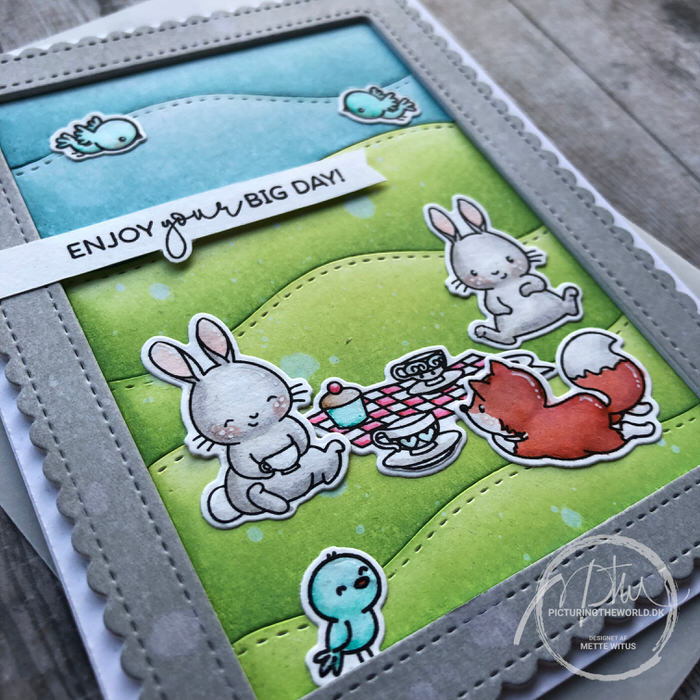 Jeg har brugt motiver og tekster fra Tea with Friends og Picnic With Friends, begge fra Mama Elephant.