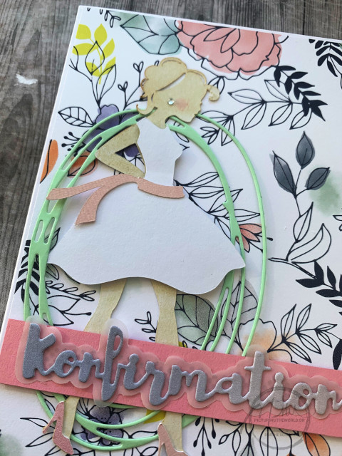 KOnfirmation er lavet med die fra Dixi og skåret ud den den lille del af Indigo Hills 2 - Ridge Pinkfresh Studio Fresh.