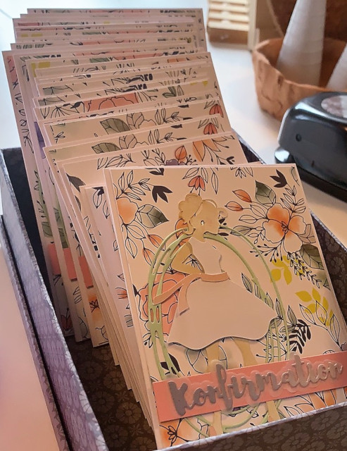 Jeg har samme med mine søde hjælpere haft travlt med at lave konfirmations invitationer og bordkort til Niecens kommende konfirmation.