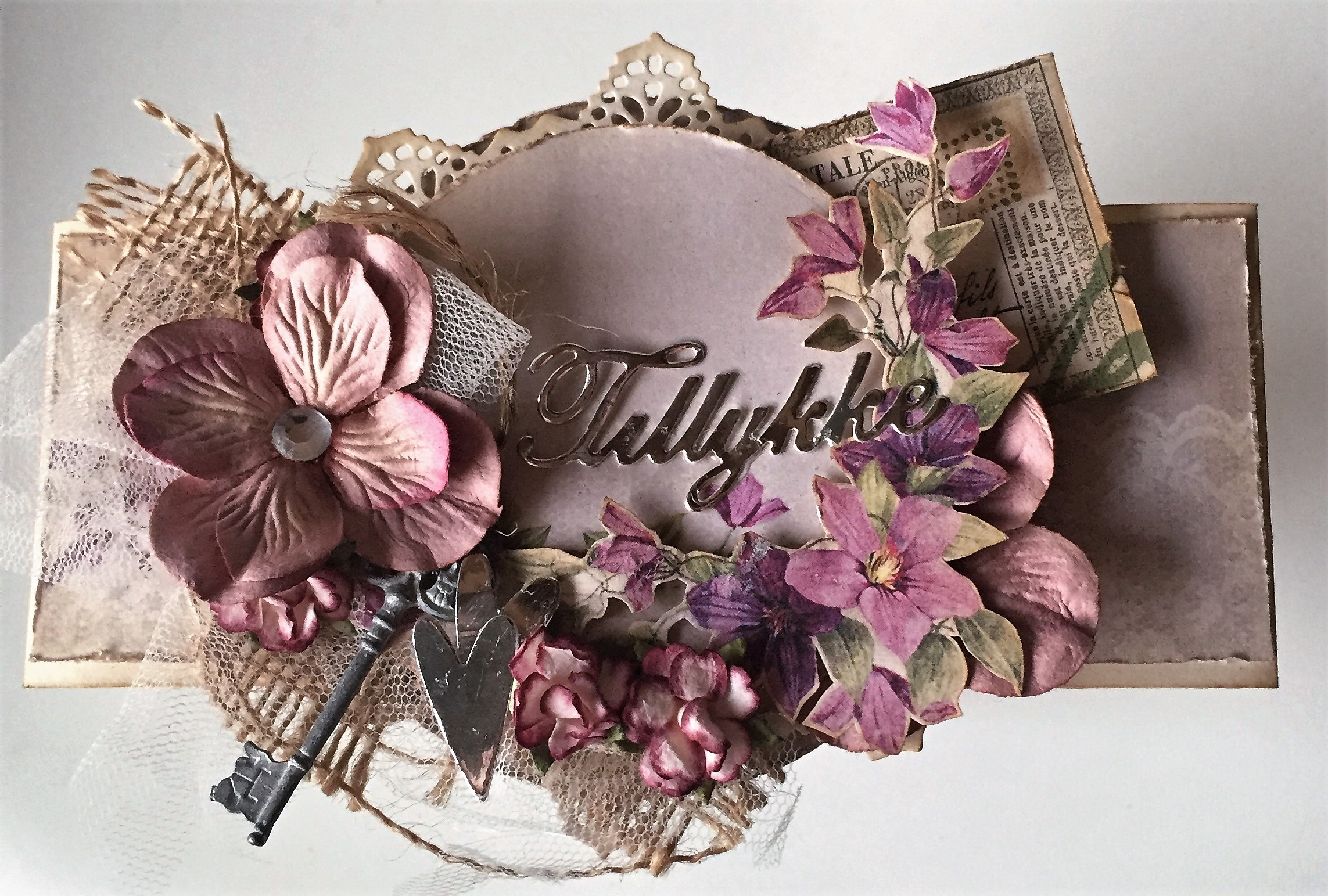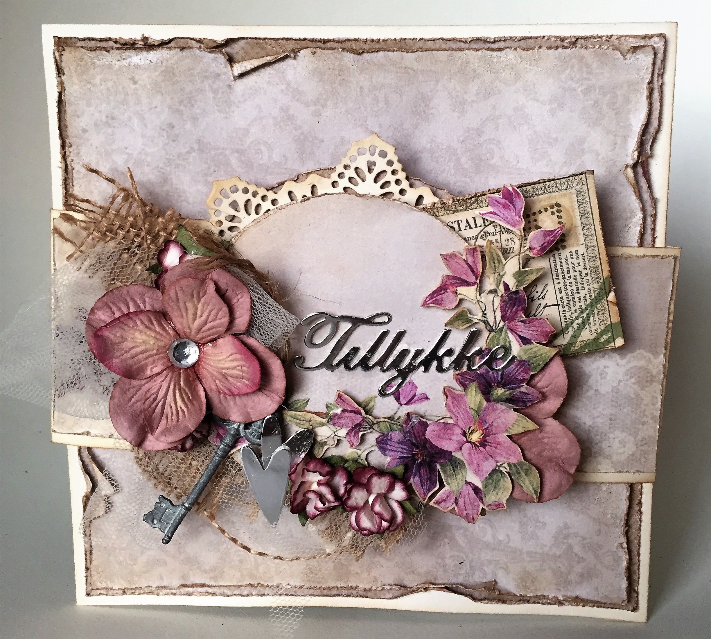 Jeg har denne gang lavet et lyst og romantisk vintage kort med det smukke papir "Scent of lavender" fra Pion Design.