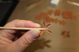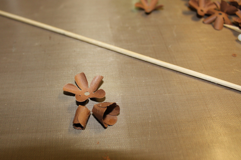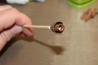 Hvert lille blad skal nu rulles omkring blomster pinden